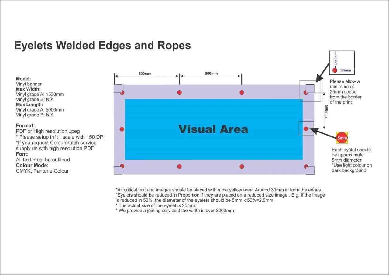 - Colour: CMYK process colours (no RGB)